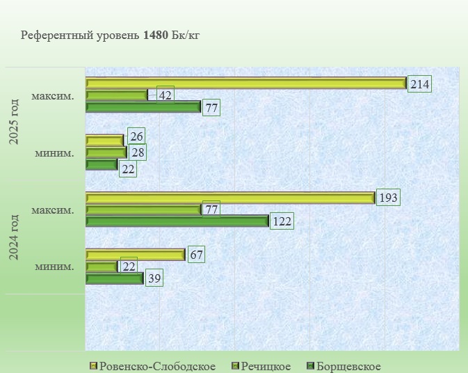 * Соответствие референтному уровню устанавливается путем сравнения с референтным уровнем измеренного значения содержания 137Cs в продукции с учетом погрешности метода его определения.