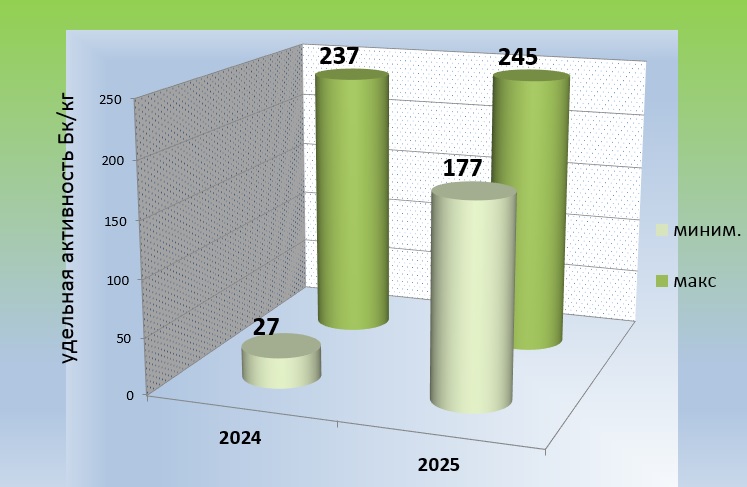 Минимальные и максимальные значения удельной активности радионуклида цезий - 137,